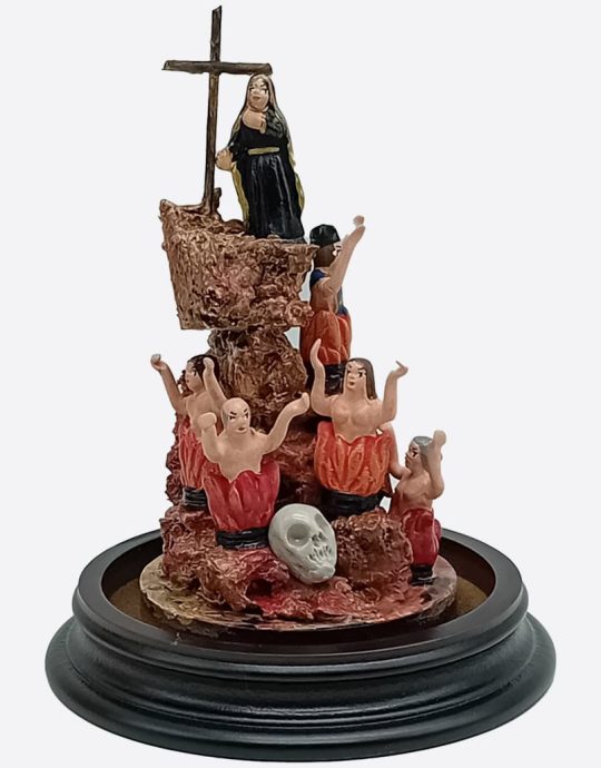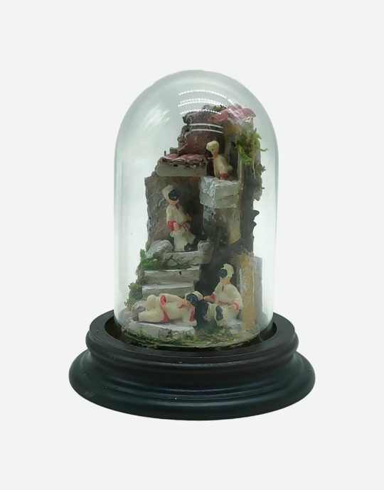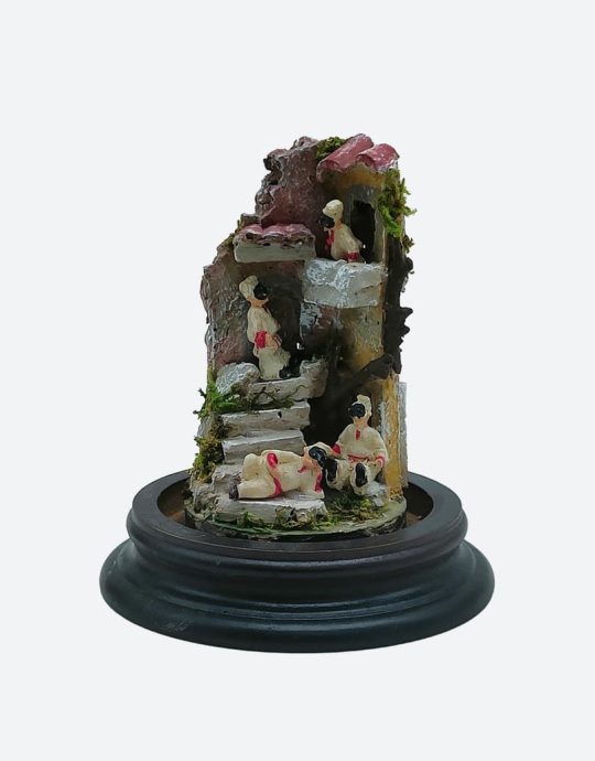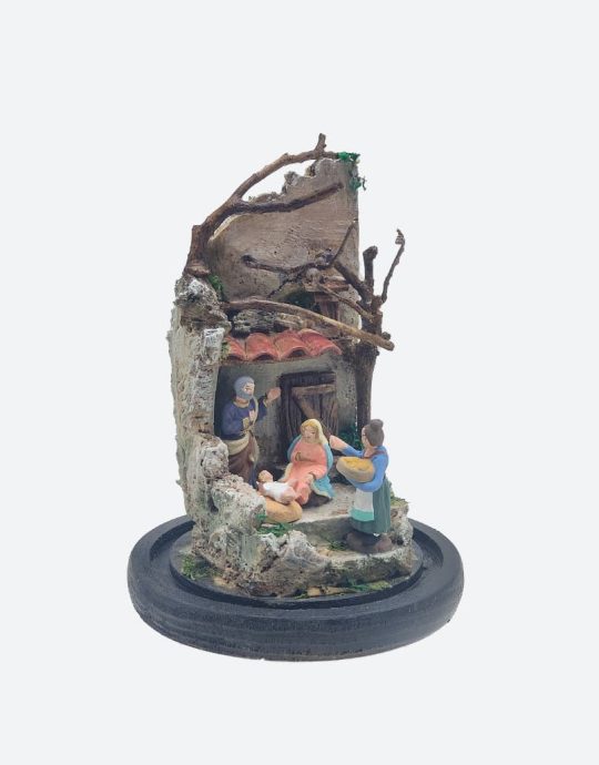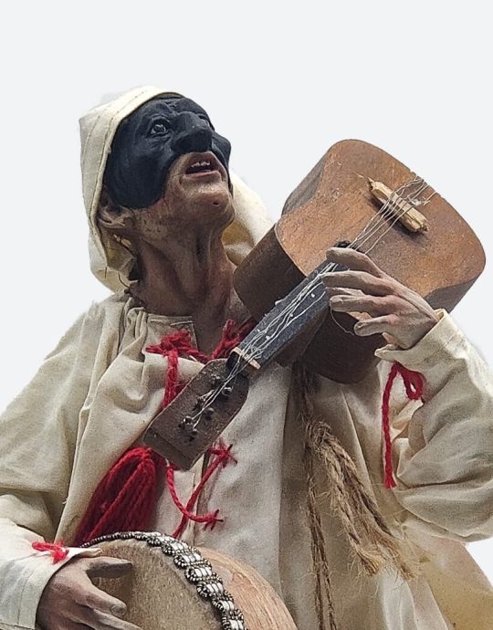 I personaggi del presepe raffigurano il mondo del ‘700, tra pastori e nobili, scene di vita minuta rupestre e scene di vita agiata della nobiltà partenopea. È in questo scenario che si collocano le statuette religiose: la natività, gli angeli, i re magi. Ma non solo: arricchiscono le scenografie figure presepiali tramandate dalla cultura scaramantica e profana, come i pulcinella, i gobbi e le anime purganti.